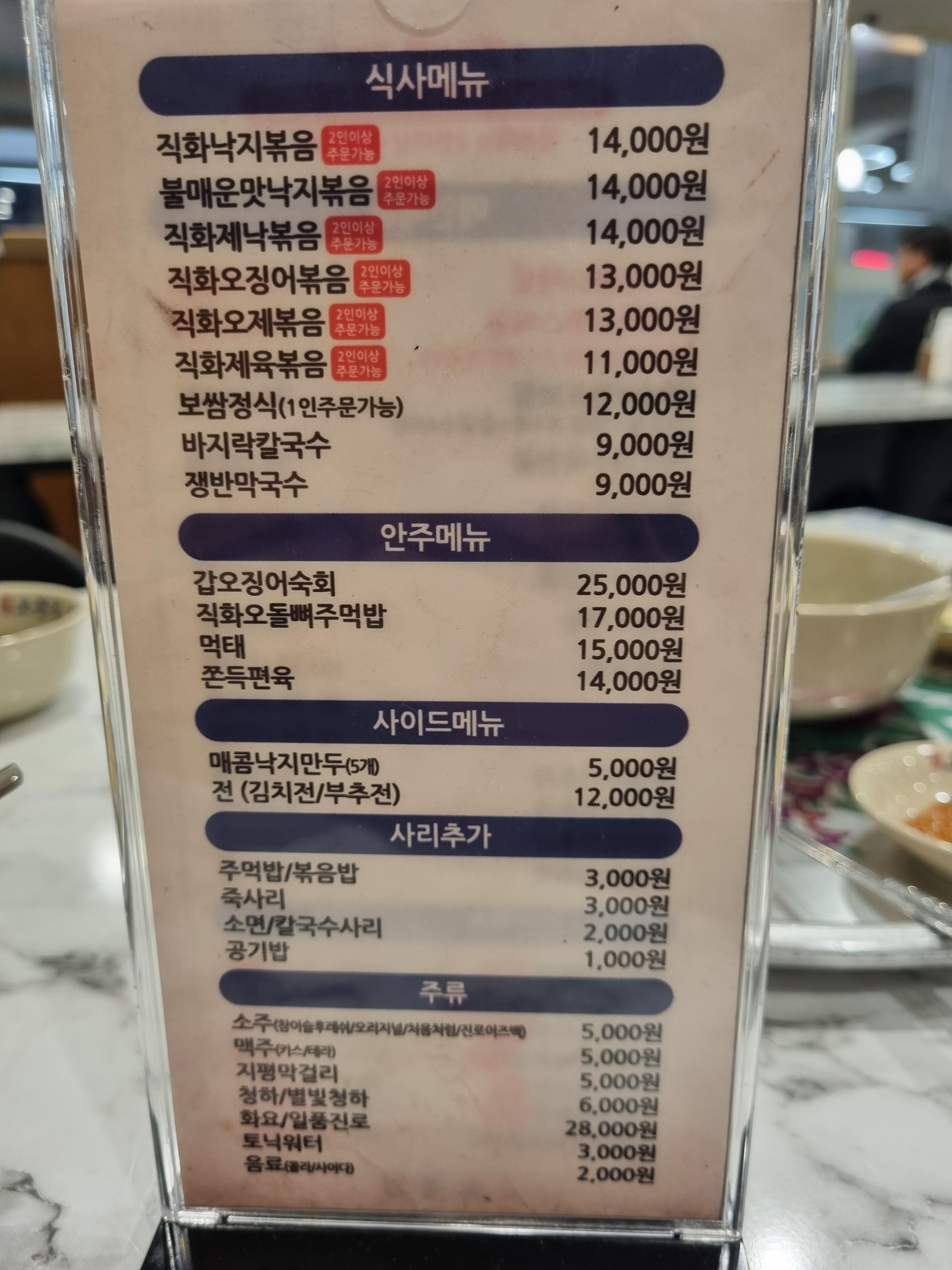 아래는 직화낙지볶음을 먹었을때 사진입니다.