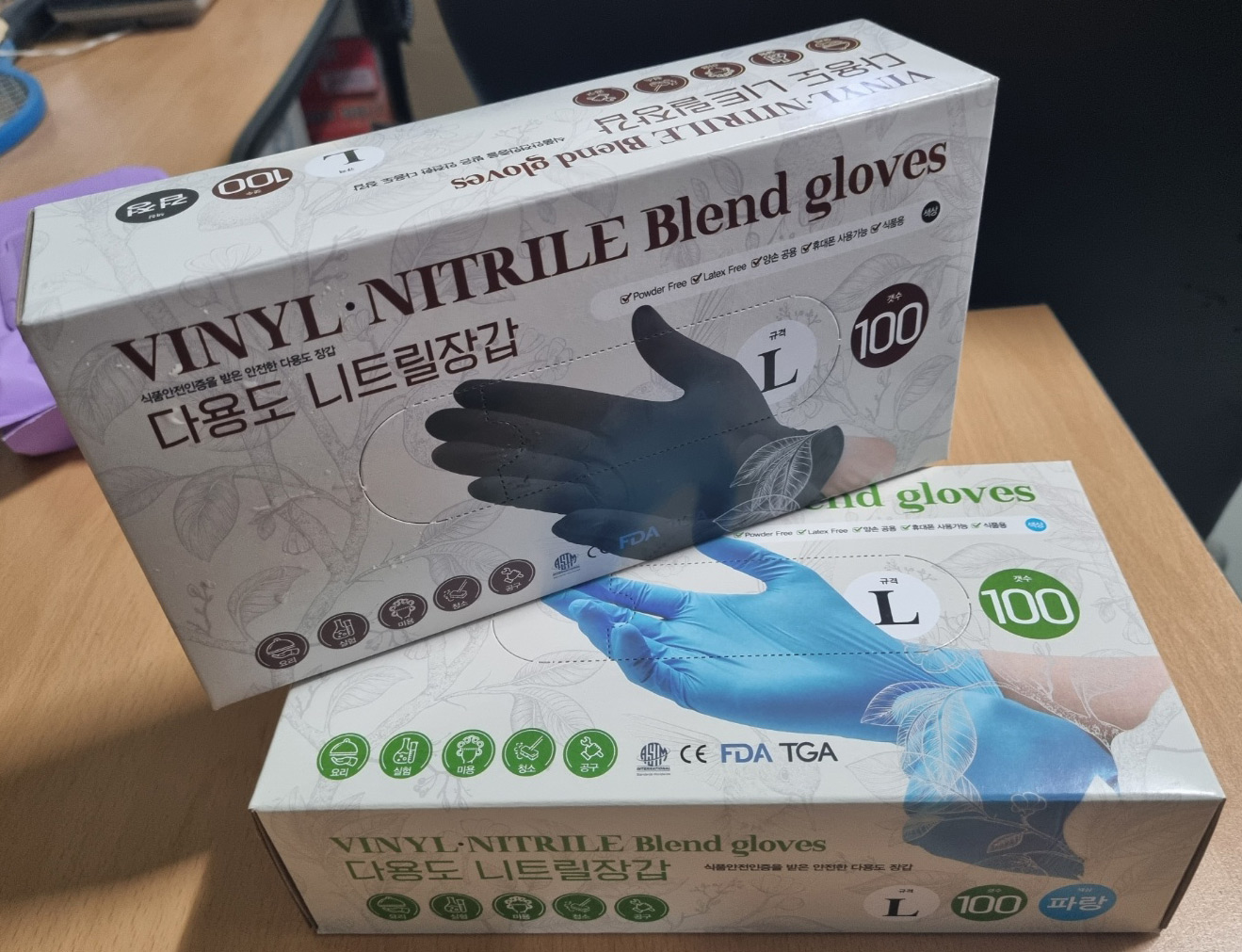 니트릴장갑 100매 두가지 색상을 하나씩 사봤습니다.